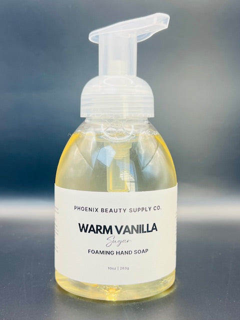 Indulge in the cozy aroma of Warm Vanilla Sugar foaming hand soap, a gentle cleanser that leaves hands soft and beautifully scented.